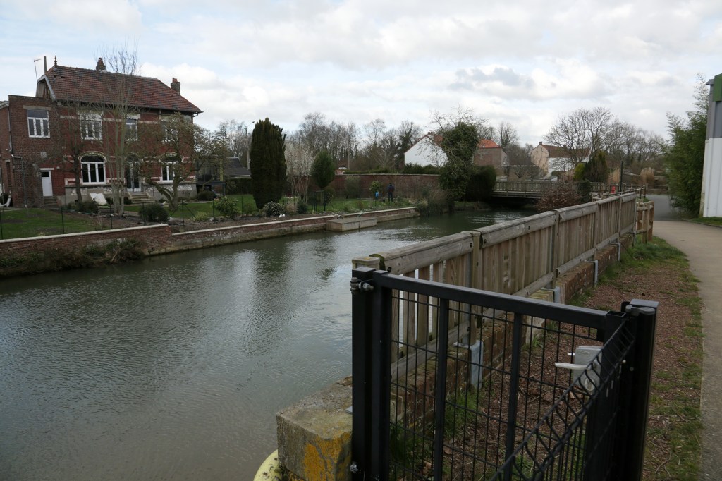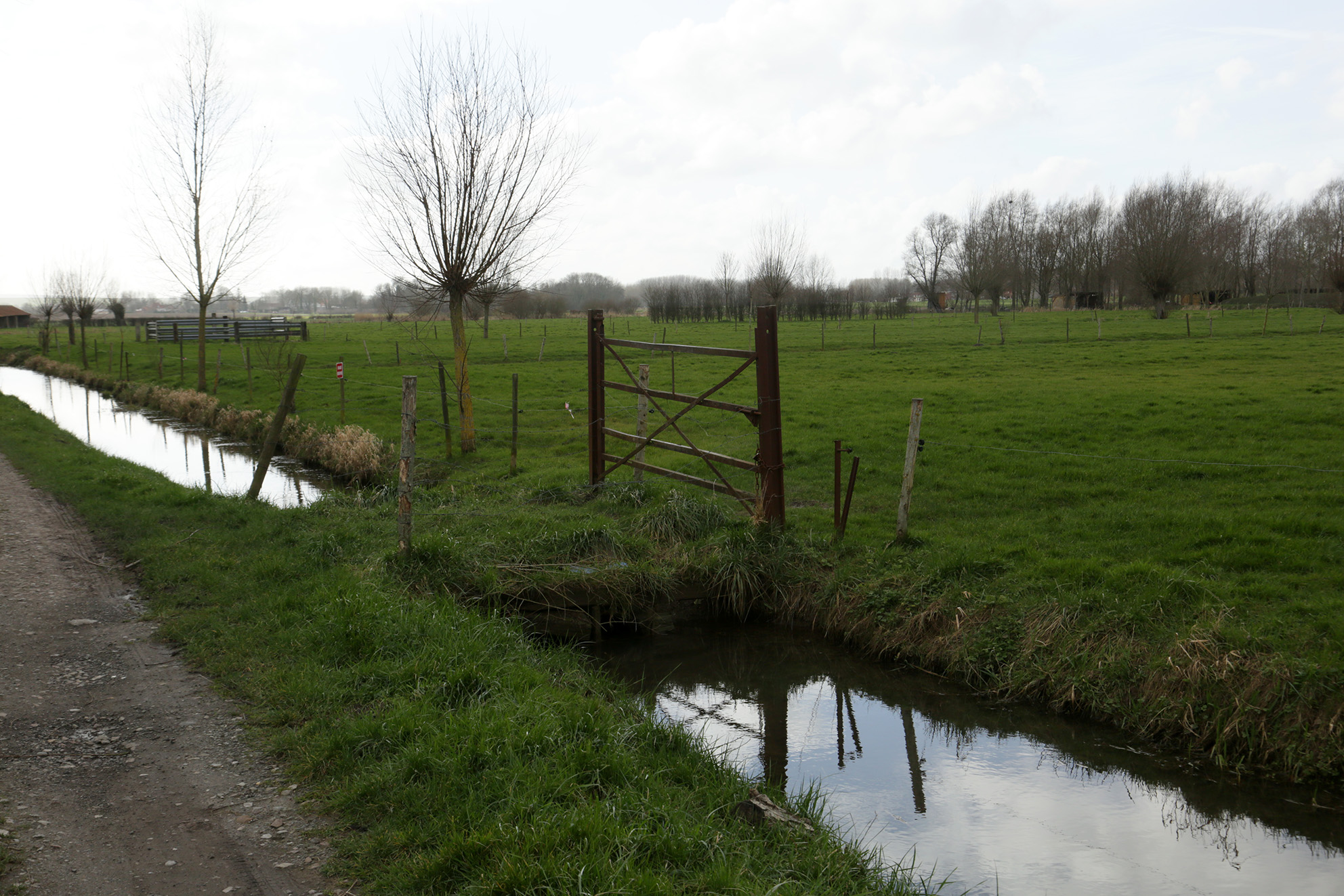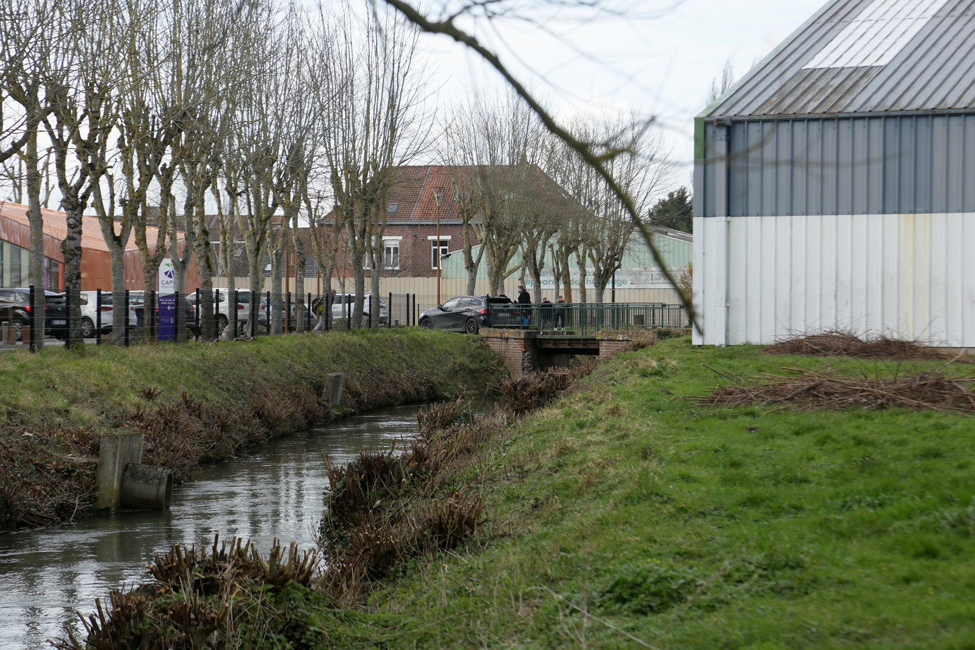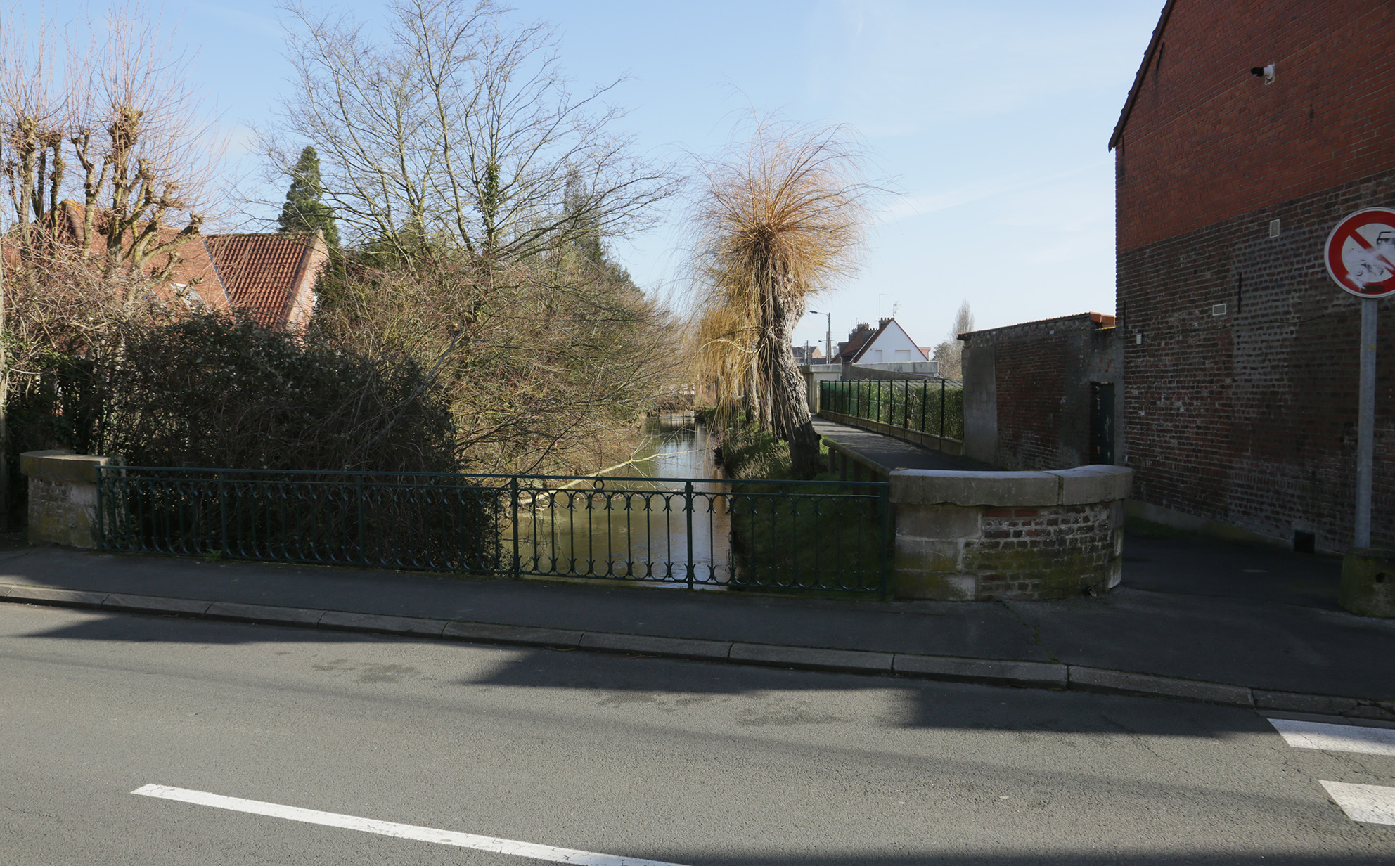 Direction Aire-sur-la-Lys, au fossé de dérivation de la Lacquette rejoignant la Laque, celui-ci longe la D943…