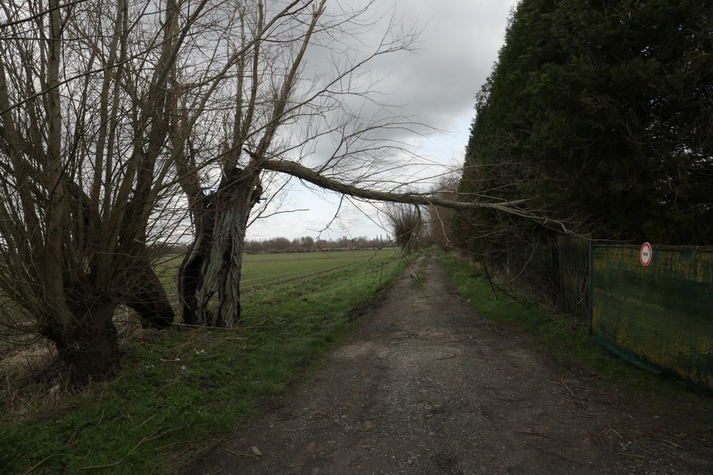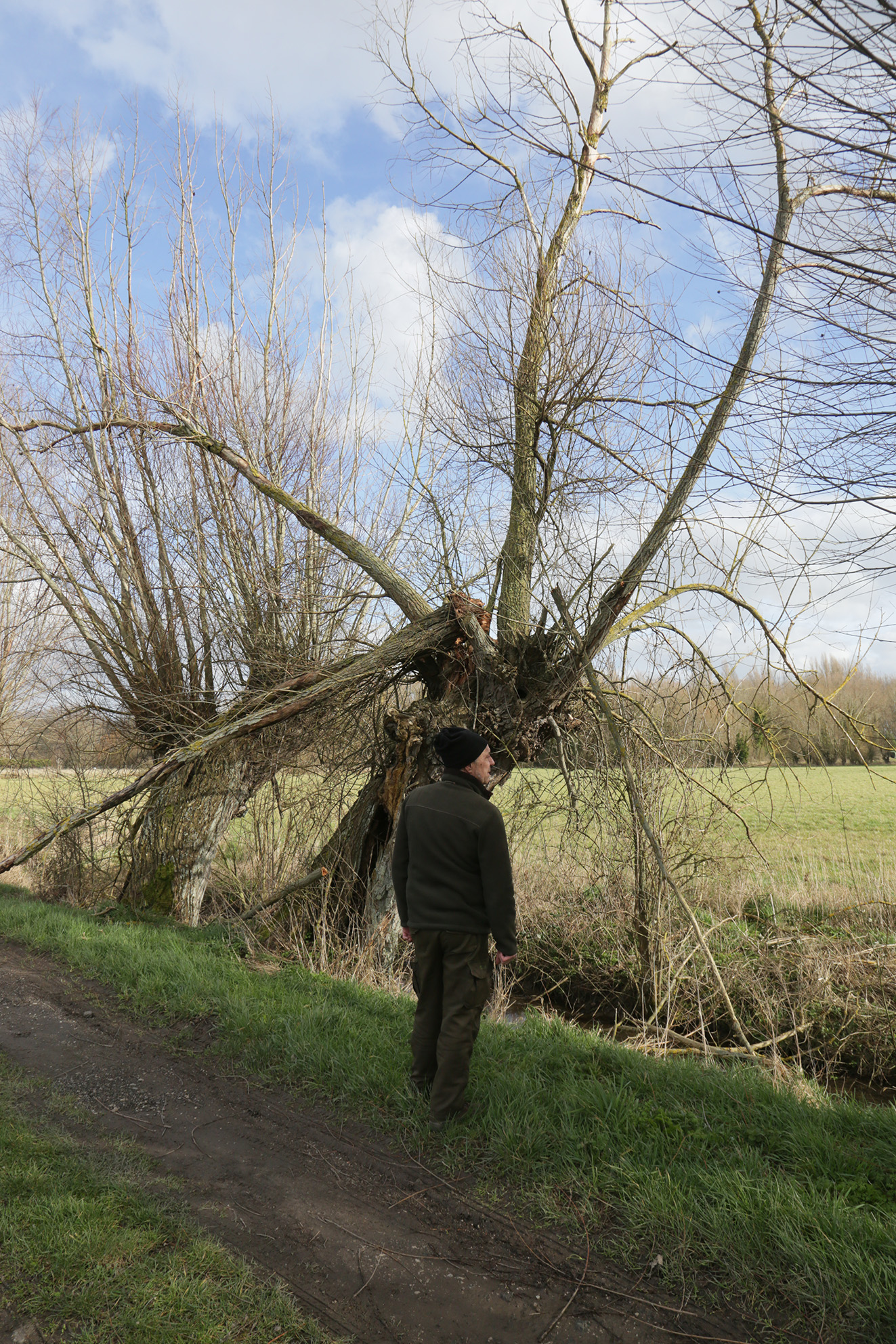 De l’autre côté de la digue, un autre fossé coule parallèlement, de vieux saules blancs habitent la berge ; l’eau stagne, couverte d’algues ; pour lui, un signe d’eutrophisation du milieu…
