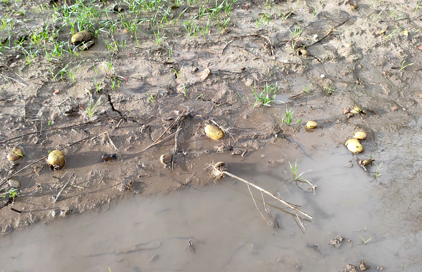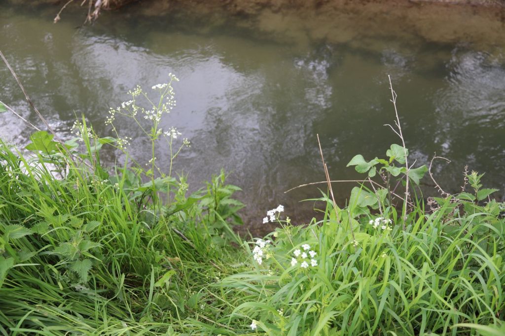 Après la dernière sortie du samedi 6 mai de « En suivant la Lacquette » avec du public, et la fin du Grand Tour du bassin de la Lacquette, je suis entré dans la dernière phase de la résidence : l’itinérance des campements auprès de la rivière, dans 8 lieux, d’Estrée-Blanche à Witternesse : … des interventions…