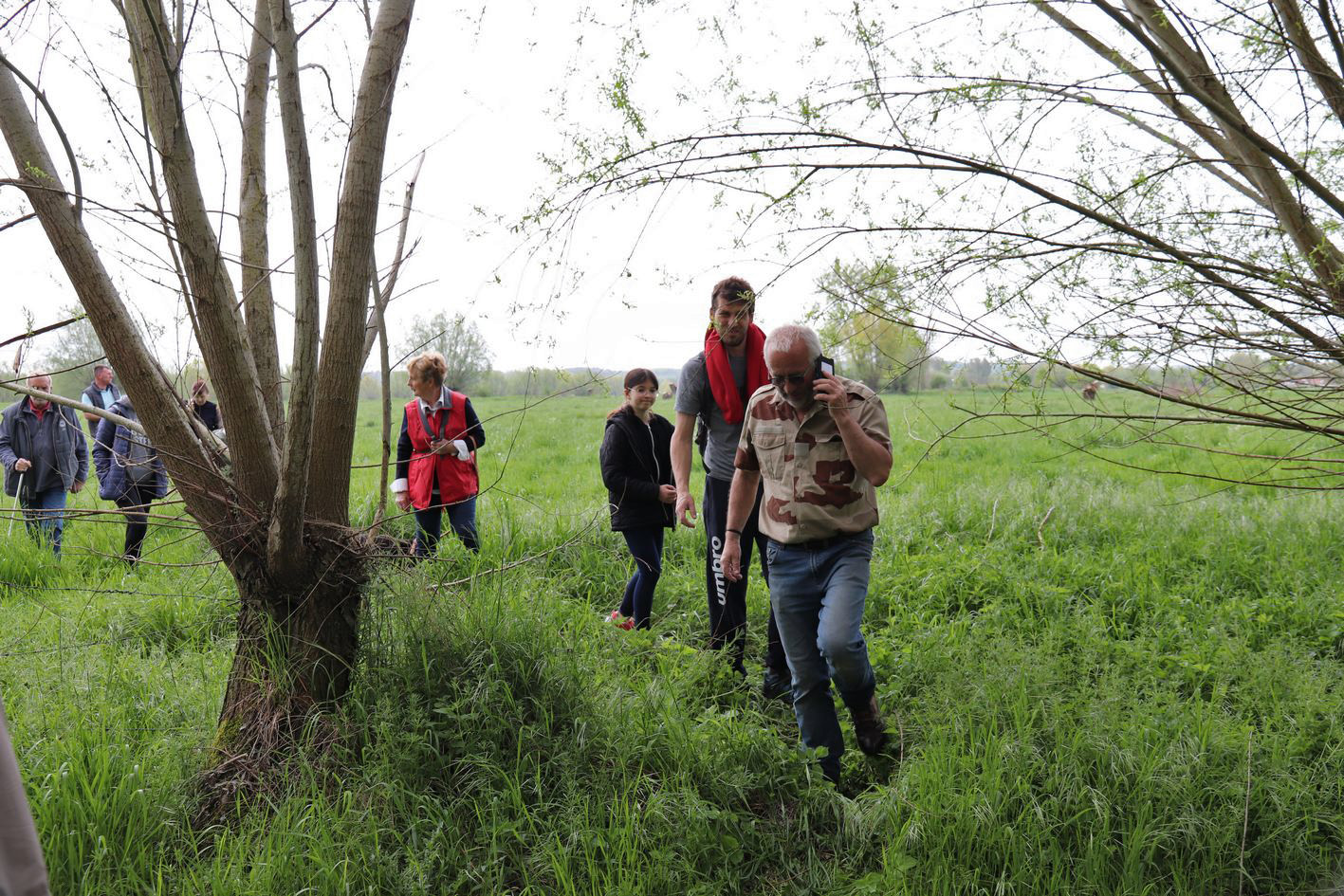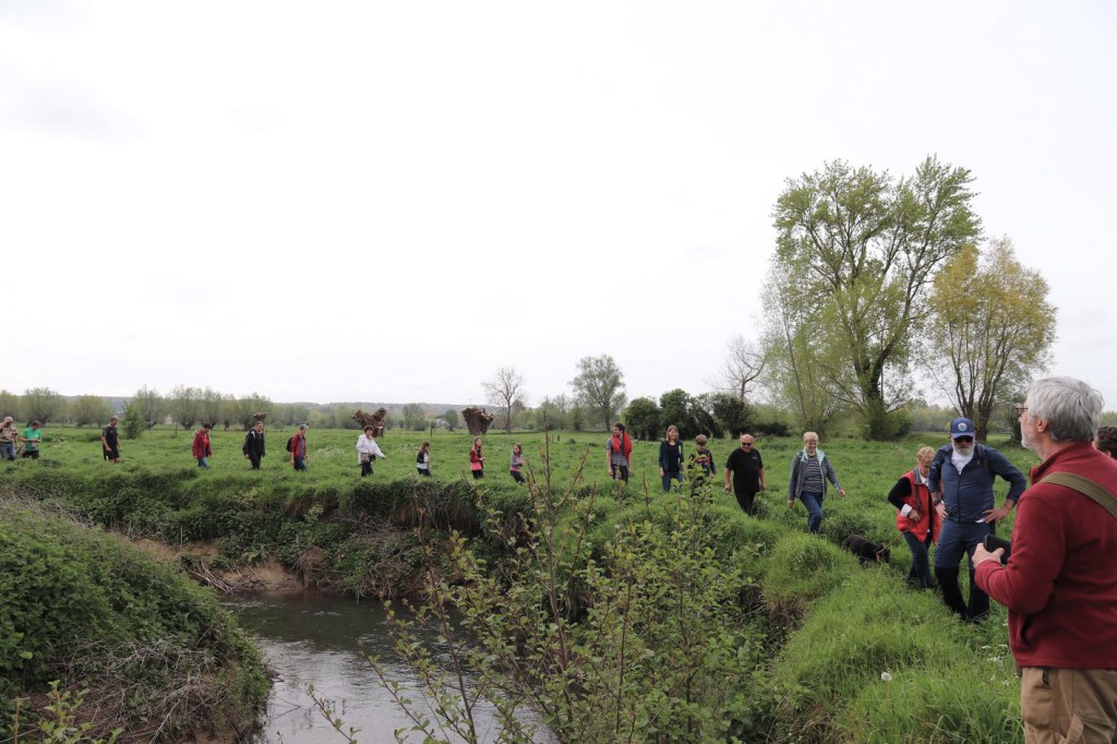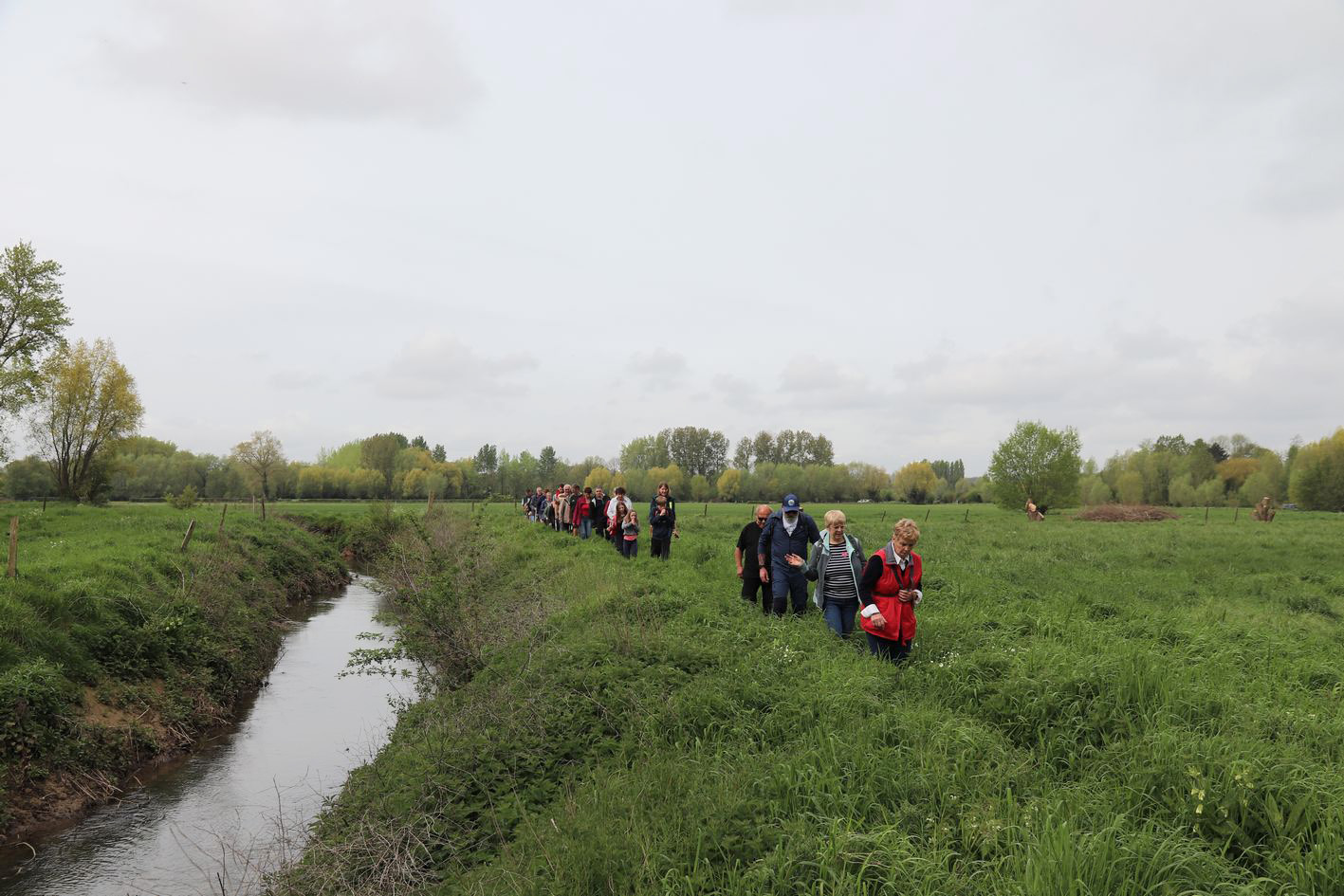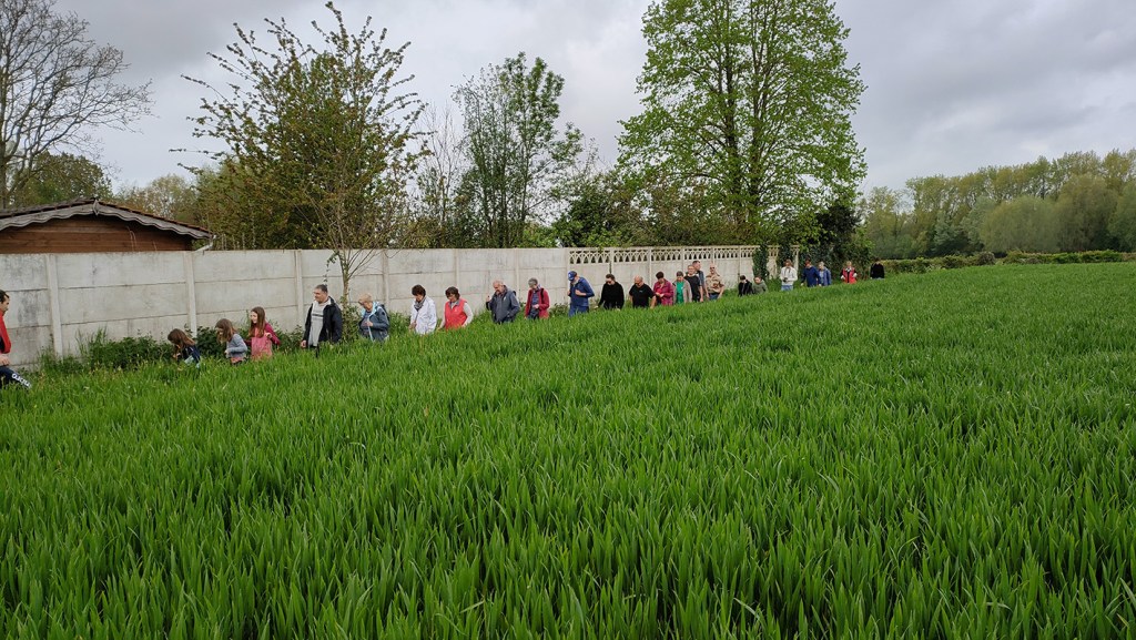 Après Estrée-Blanche et Quernes : Witternesse, troisième et dernière marche pour la Lacquette avec public embarqué / En coupant à travers les prés et les champ, entre la route de Blessel et l’abbaye de Saint-André.