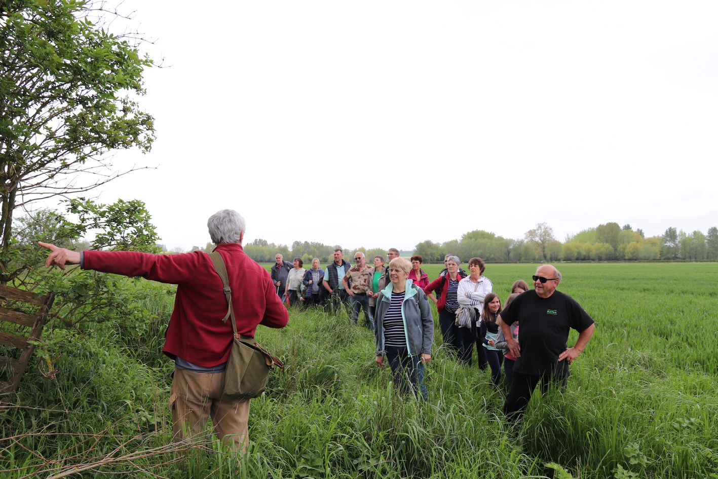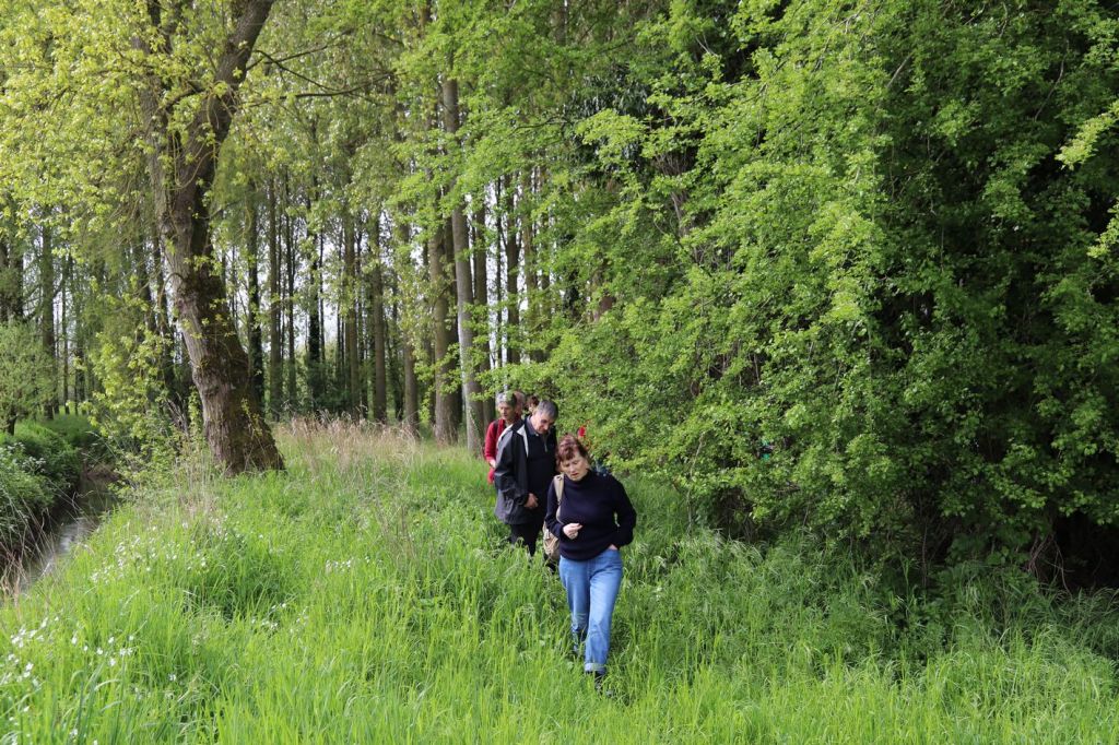 Nous avons pris du retard. Mais prenons tout de même le temps d’observer au loin : sur notre gauche, bordant la vallée, les maisons de l’entrée de Saint-Quentin ; devant, le chemin se dirige vers le chemin de la Lacquette ; un tracteur est à l’œuvre dans un champ… Quelqu’un fait remarquer que les semis de betteraves ont 15 jours de retard cette année. Derrière nous, dans le sous-bois, un chevreuil traverse en bondissant, attirant l’attention du groupe.