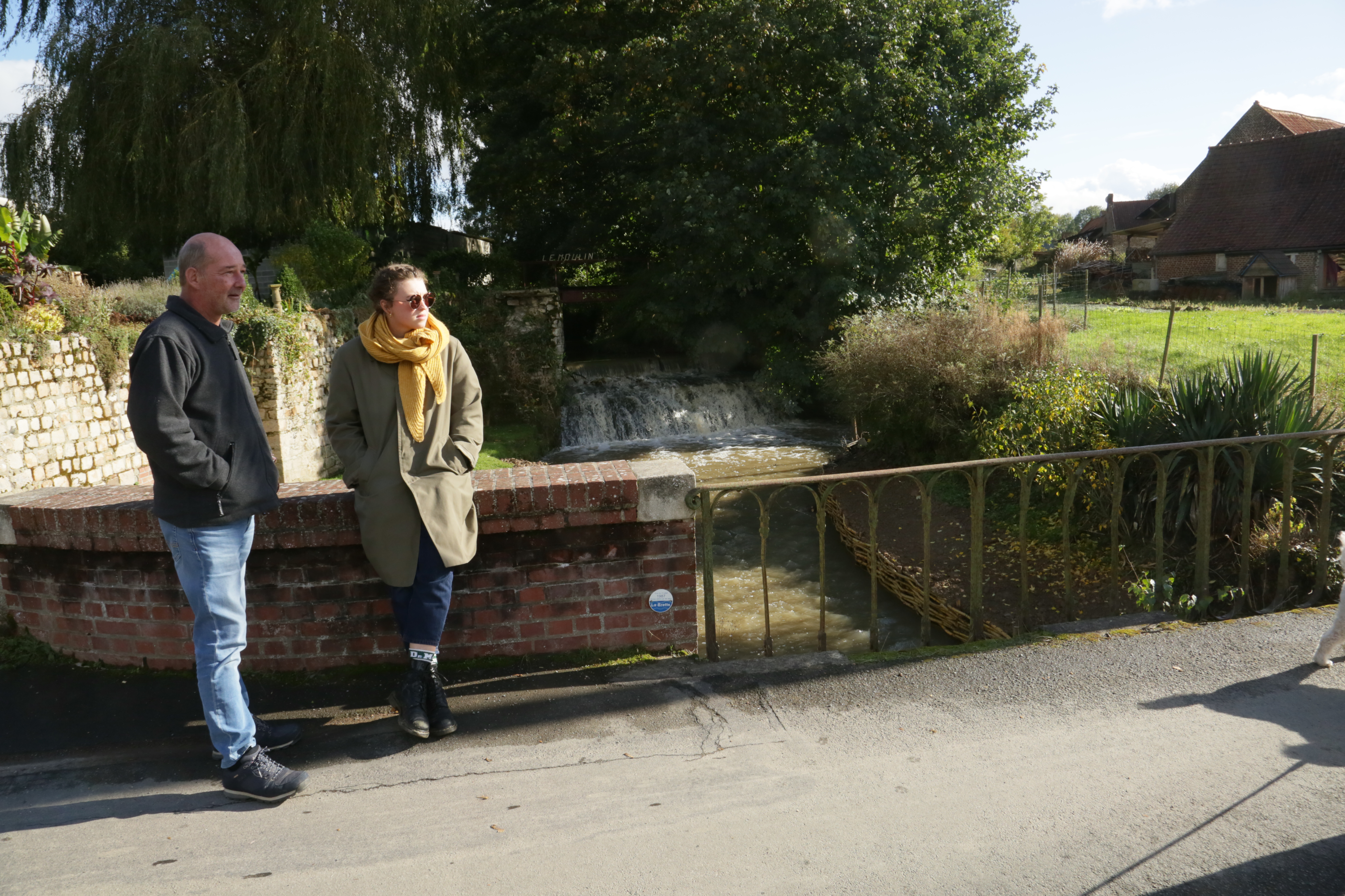 Partir vers 9h, rendez-vous à Estrée-Blanche avec Jérémie Duval, technicien rivière de la communauté d’agglomération. Émilie m’accompagne. Nous le retrouvons non loin de la mairie. L’homme est affable, la parole rapide, l’information dense. Va falloir suivre sans trop s’égarer… il travaille sur la restauration hydraulique des cours d’eau traversant le territoire de la communauté d’agglomération.