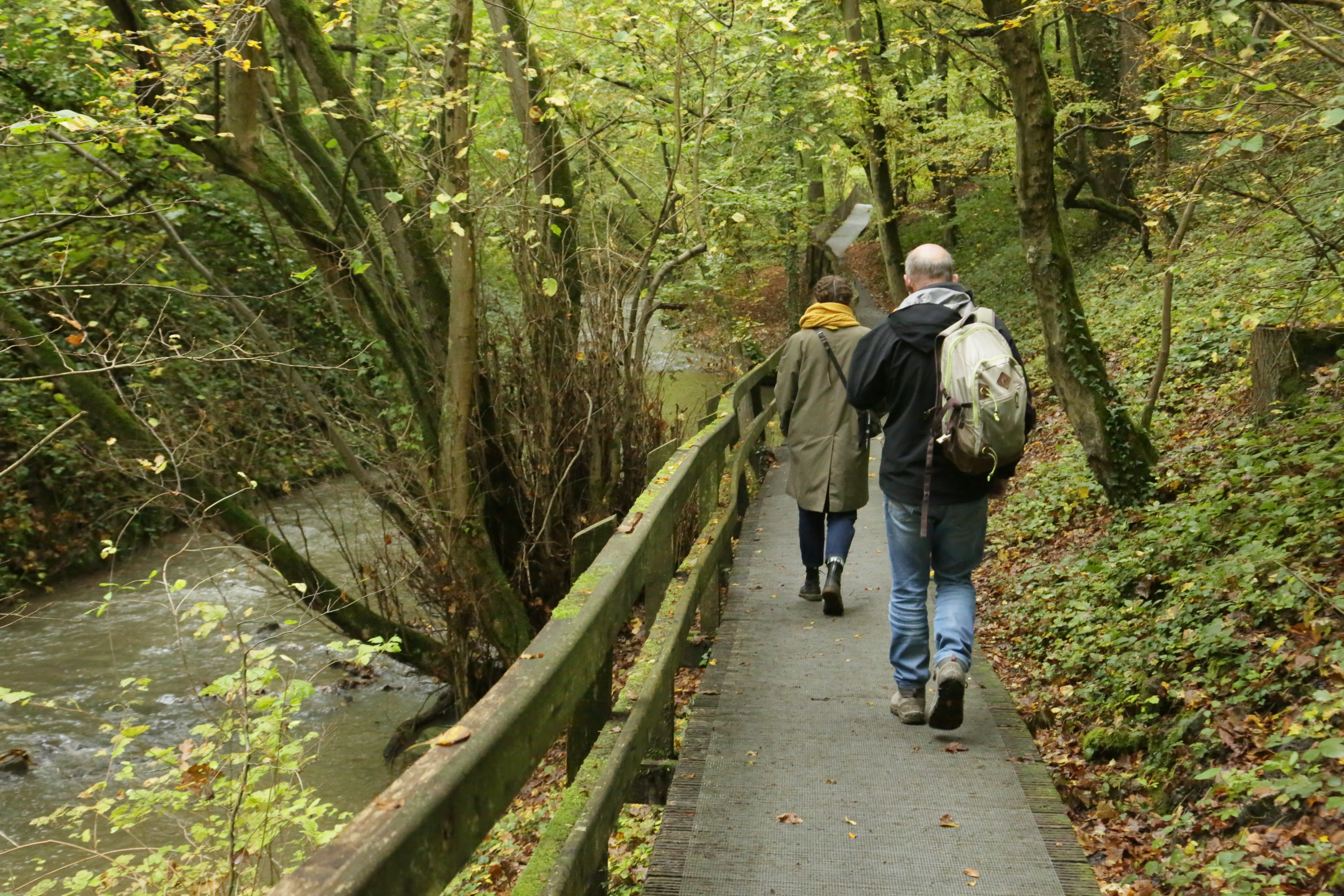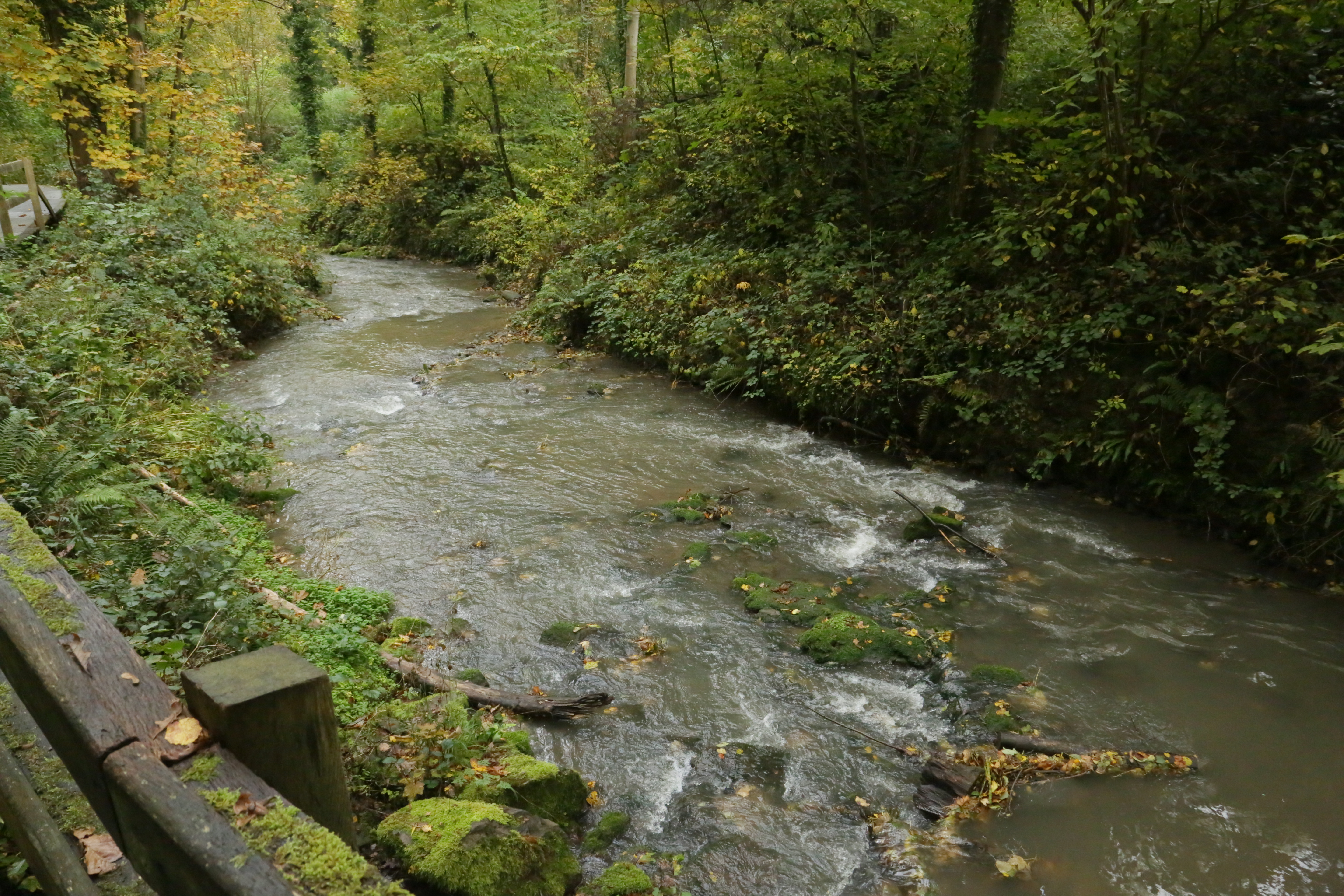 Jérémie nous entraîne voir le parcours dans cet espace naturel. L’endroit est très prisé, après avoir contourné l’endroit, nous arrivons sur un cours d’eau, un chemin de platelage suit le mouvement de la rivière, rapide, chantante. Je me croirais en Bretagne, elle est encaissée et ombragée. Nous jouons les montagnes russes, descendant, tournant à gauche, à droite et finissons par remonter sur notre droite, quittant la rivière pour une ligne droite, ancien passage d’une voie de chemin de fer… qui nous ramène au point de départ, fin de la boucle :retour à Béthune, il est 16h30.